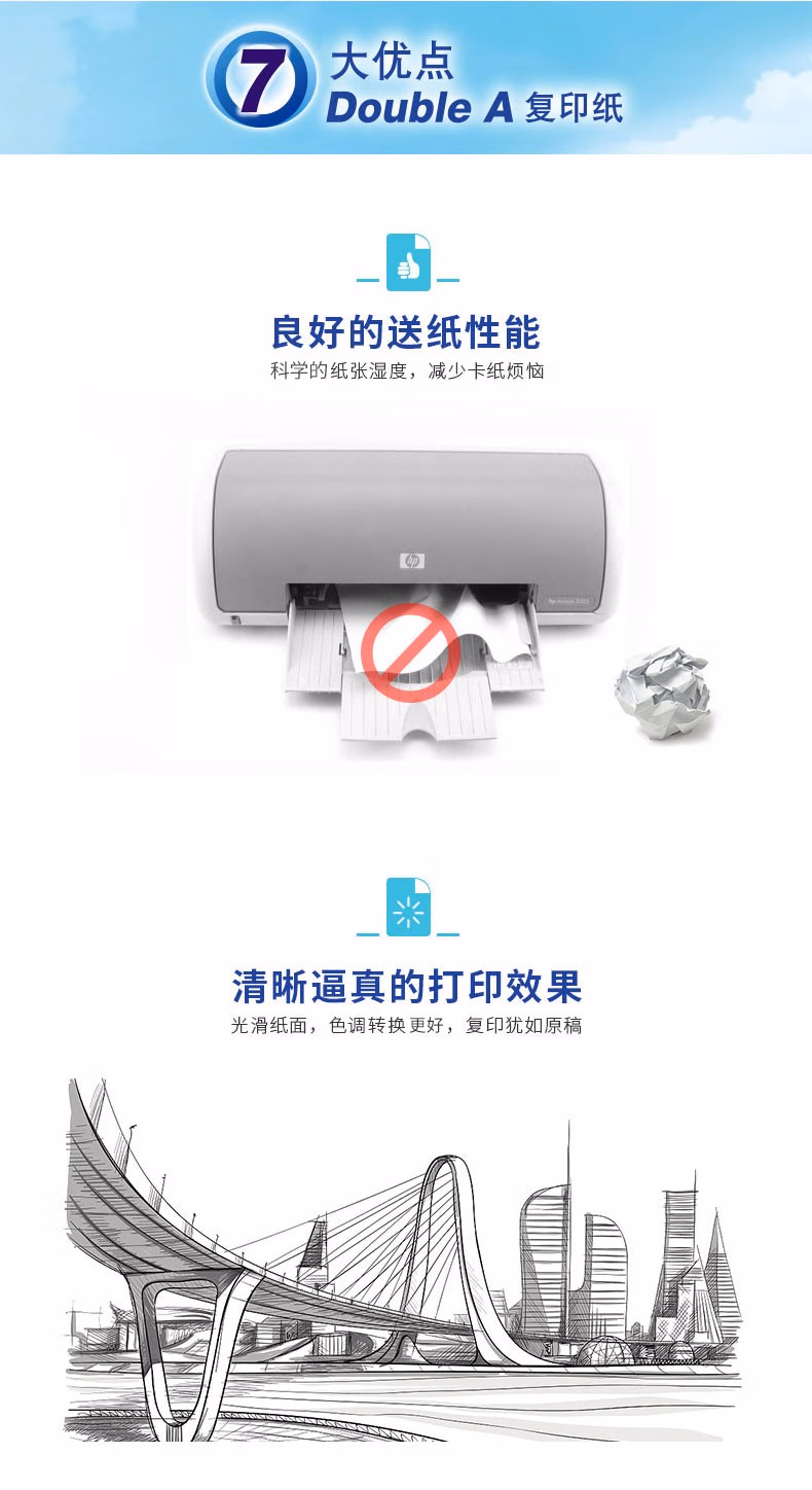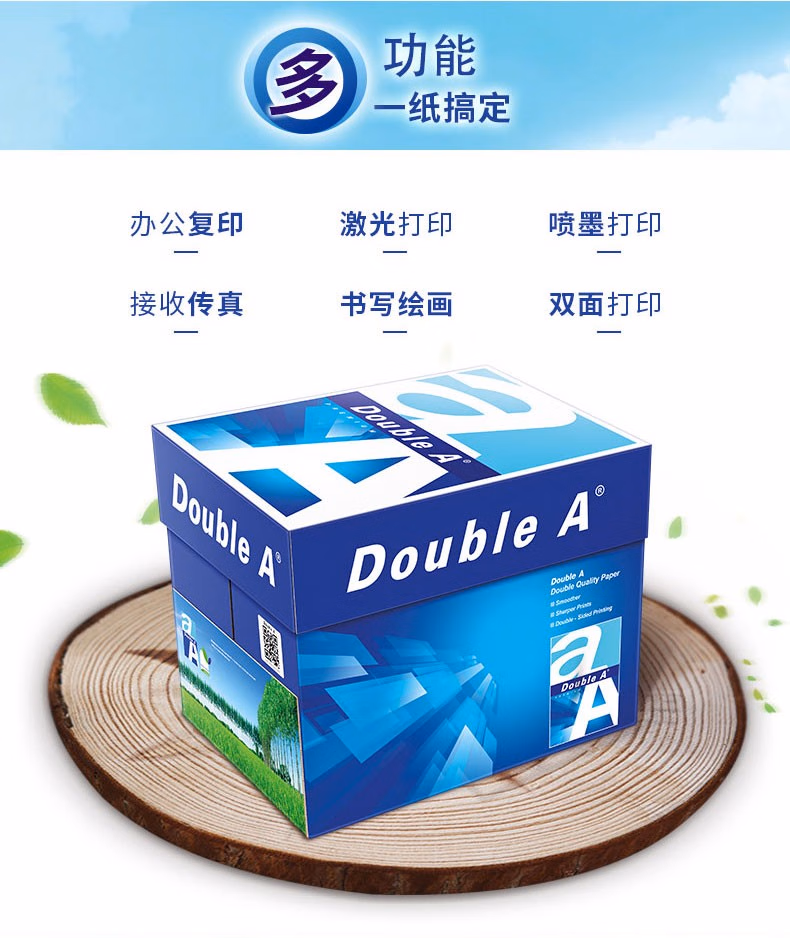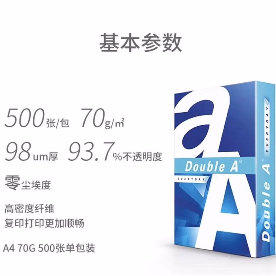 达伯埃DoubleA达伯埃A4A3打印纸复印纸70g办公用纸80g顺滑双A纸双面打印 达伯埃A4 80克 100张简装